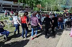 In Turkey's western cities of Edirne and Kırklareli, Kakava is celebrated joyfully. Kakava celebration in Edirne nowadays takes the form of an international festival, which is also supported by the governor and the mayor of Edirne. The official part of the Kakava festival takes place in Sarayiçi, the place where traditional Kırkpınar oil-wrestling tournament is held each year. After light the Bonfire and jump over it. Music playing and Belly dancing is performed. The official part ends after the distribution of rice dish pilaf to the around 5,000 attendees.[6] The celebration continues in the dawn of the next day at the bank of Tunca River.[7][8][9]
