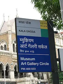 Kala Ghoda (IPA:Kāḷā Ghōḍālit. 'Black Horse') is a crescent-shaped art district/neighborhood in Mumbai, India.[1] It hosts several of the city's heritage buildings including museums, art galleries and educational institutions like the Chhatrapati Shivaji Maharaj Vastu Sangrahalaya, the Jehangir Art Gallery, the National Gallery of Modern Art, and The Arts Trust - Institute of Contemporary Indian Art.[2]