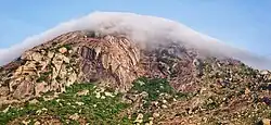 Skandagiri, also known as Kalavara Durga, is a mountain fortress located approximately 62 km (39 mi) from Bangalore city, and 3 km (1.9 mi) from Chikballapur in the Indian state of Karnataka. It is off Bellary Road (National Highway 7 Hyderabad-Bangalore Highway), and overlooks Nandi Hills and Muddenahalli. The peak is at an altitude of about 1,450 m (4,760 ft). It is accessed from Kalavara village, which has a population of, 1093 according to 2011 census.[1] The hill features the ruins of a fort believed to have been built by Tipu Sultan, the ruler of the Kingdom of Mysore. It was used as a military stronghold and lookout point.