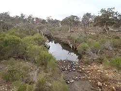 The upper reaches of the Kalgan River lie within the National Park. These tributaries are marginally saline to brackish, suggesting the levels of salinity are natural. The loss of catchment vegetation (66% of the catchment is cleared) has increased salinity levels downstream.[4] The lower section of the Kalgan River is tidal; a rockbar at the Upper Kalgan bridge separates the upper section from the tidal lower section. The tributaries of the Kalgan River include Napier Creek, Boonawarrup Creek, Young River, Stony Creek and Gaalgegup Creek. The river flows through two pools of note: Meriwarbelup Pool and Noorubup Pool.