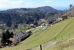 The local church, built on a small hill above the village, is dedicated to Saint Acacius of Ararat[4] and is home to an important colony of the lesser horseshoe bat. The church is a chapel of ease belonging to the Parish of Gozd.[4] The church is Gothic, dating to the second half of the 15th century, but parts of it were rebuilt on a number of occasions.[5] The current building dates from 1753, and it features paintings dating from 1772 by Janez Potočnik.[4]