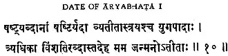 The way how the date of the beginning of the Kali epoch was calculated can be summarized thus. The whole basis for the computation is the following cryptic statement by Āryabhaṭa in Āryabhaṭīya (śloka (stanza) 10 in Chapter 3 Kālakriyā):[2][3]