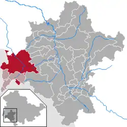 Kaltennordheim (German: [ˌkaltn̩ˈnɔʁthaɪm] ⓘ) is a town in the Schmalkalden-Meiningen district, in Thuringia, Germany. It is situated in the Rhön Mountains, 22 km southwest of Bad Salzungen, and 35 km east of Fulda. The former municipalities Aschenhausen, Kaltensundheim, Kaltenwestheim, Melpers, Oberkatz und Unterweid were merged into Kaltennordheim in January 2019. At the same time, Kaltennordheim passed from the Wartburgkreis to Schmalkalden-Meiningen.