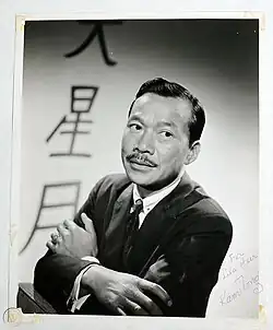 Kam Tong (December 18, 1906 – November 8, 1969) was a Chinese-American actor. He was best known for his role as Hey Boy on the CBS television series Have Gun – Will Travel and as Dr. Li in the film version of the Rodgers and Hammerstein musical Flower Drum Song. Curiously, though appearing as a series regular on Have Gun – Will Travel,[1] Kam was also a regular on the short run CBS-TV series Mr. Garlund in 1960. He appeared in many movies, often as an uncredited Chinese, Japanese, or Filipino character. He appeared in many television shows, including The Man from U.N.C.L.E., The Big Valley, The Time Tunnel, The Final War of Olly Winter, and I Spy.