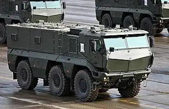 KamAZ Typhoon (Russian: КамАЗ-63968 Тайфун) is a family of Russian multi-functional, modular, armored mine-resistant ambush protected vehicles manufactured by the Russian truck builder KAMAZ. The Typhoon family is part of Russia's Typhoon program. As of 2021, the number of Typhoons in the Russian Armed Forces fleet was about 330 units of Typhoon-K.[1][3][4][5][6][7][8][9][10][11]