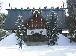Kamikawa Shrine (上川神社, Kamikawa jinja) is a Shinto shrine located in Asahikawa, Hokkaido.[1] Established in 1883, it is dedicated to the kami Amaterasu (天照皇大御神), Ōkuninushi (大己貴大神), Sukunabikona no Ōkami (少彦名大神), Toyoukebime (豊受姫神), Ōmononushi (大物主神), Ame-no-Kaguyama-no-Mikoto (天乃香久山神), Takeminakata (建御名方神), Emperor Ōjin as Hondawake no Mikoto (譽田分命), and others. Its annual festival is on July 21.