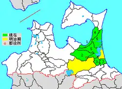 During the early Meiji period administrative reorganization of Japan on July 22, 1878, Kamikita and Shimokita were divided from former Kita County, and Kamikita was divided into 50 villages. In the cadastral reform of April 1, 1889, the number of villages was reduced through consolidations and mergers to sixteen.