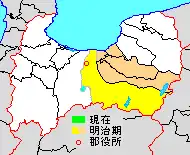 - April 1, 1896 - 5 towns and 28 villages split and created Nakaniikawa District. (3 towns, 21 villages)