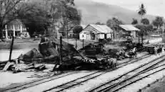 However it also experiences grim situations as it was located in the heat of the conflict during Malayan Emergency starting in 1948. Services is always disrupted by frequent derailments by Malayan Communist Party forces along the railway line nearby. The station building itself has been burned in an attack by MCP forces in 1952. A temporary building has been built to replace the station which is smaller in size at the same site.[1]
