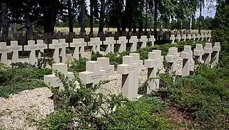 In September, the Kampinos Group also engaged in several defensive battles. On September 14, soldiers of the Palmiry-Młociny Regiment repelled a German punitive expedition intending to pacify Buda and Mariew.[237] Meanwhile, in mid-September, the Germans, supported by armored cars, attempted to dislodge Home Army soldiers from Pociecha. Covered by minefields, soldiers of the Sochaczew Battalion managed to repel all attacks. The Germans lost several killed and one armored car in the vicinity of Pociecha.[238][239]
