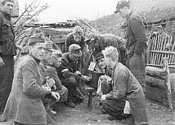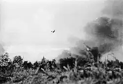 With the cessation of the Soviet Union's offensive on the Warsaw front and the waning of the uprising, the German command concluded that the time was ripe to liquidate the Kampinos Group.[249] In the anti-partisan operation, codenamed Sternschnuppe (Falling Star"), a combined tactical group under the command of General Friedrich Bernhard took part, equipped with artillery, armored vehicles, and air support. Tadeusz Sawicki assessed that the total strength assigned to crush the Kampinos Group exceeded, in terms of numbers and armament, the structure of a regular infantry division.[250][251] The beginning of Operation Sternschnuppe took place on September 27, when the Germans struck at Polish positions in the eastern and south-eastern parts of the Kampinos Forest. Fierce battles took place in the area of Brzozówka, Janówek, Pociecha, and Zaborów Leśny.[252][253][254] On that day, German Air Force also carried out a raid on the headquarters of the Kampinos Group in Wiersze.[251][255]