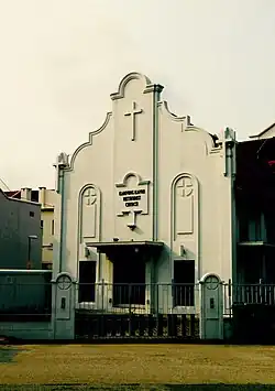 Founded as a church in 1894, Kampong Kapor Methodist Church began its activities in November 1890, in the lower room of the Deaconess Home. Upon request, Miss Sophia Blackmore,[5] a missionary to Singapore (and also the founder of the Fairfield Methodist Schools and the Methodist Girls' School) [6][7] started a Sunday Malay language worship service. The group comprised 25 “native” girls from the mission hostel, boys from Epworth Home (precursor of the Methodist Youth Fellowship), Malay-speaking Christian workers from the nearby Mission Press [8] and two missionaries.[9][10]