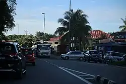 Although being only 6 kilometres (3.7 mi) from Muara and 12 kilometers from Brunei Town, the settlement had no road connecting it. The river served as the only exit from the settlement, leading north to Muara and south to Brunei Town. There was no road to Mentiri even in the 1960s when the road from Brunei Town had reached Muara. Those from the villages who were traveling to Brunei Town walked up to Bukit Sibanging and boarded a bus along Jalan Muara. It took until 1972 for the Jalan Kota Batu road between Mentiri and Brunei Town to be finished. The road needed to be finished due to a variety of developments.[7]