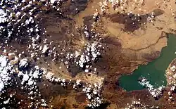 The earliest and lowest sedimentary deposits are fluvial, formed by the layering of clays, sandstones, pebbles and cobbles washed downstream by flowing rivers. The deposits are marked by mollusks, ostracods and carbonized plant parts, and demonstrate alternating passage of river channels or meandering streams. The lowest deposits are marked by a series of volcanic ash layers.[1][2]
