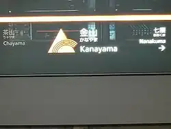 Kanayuma Station (金山駅) is a subway station on the Fukuoka City Subway Nanakuma Line in Jōnan-ku, Fukuoka in Japan. Its station symbol is a picture of a rainbow in front of a triangle which motif are and a hill in orange.