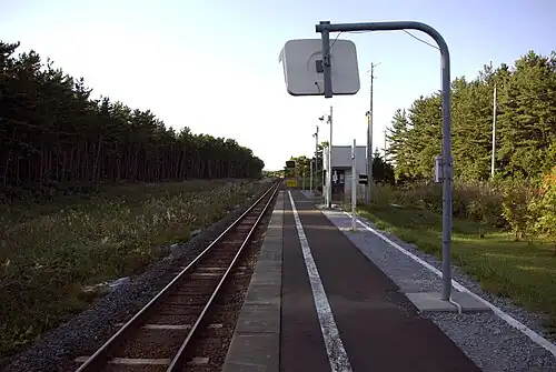 The station has one ground-level side platform serving a single bidirectional track. The station has no station building, but only a small rain shelter for passengers on the platform. The station is unattended.[2][1]