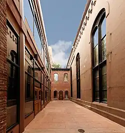 In 1905, the congregation also purchased for $30,000 (today $1,050,000) its current building at Tompkins Place and Harrison Street (renamed Kane Street in 1928),[56] along with an adjacent school building and a connecting two-story arcade.[2][12] The Romanesque revival church building, erected in 1855, had originally housed the Middle Dutch Reformed Church, and, from 1887, the Trinity German Lutheran Church.[2][3] The hiring of Goldfarb and purchase of a new building helped revive the congregation, and by 1906 (its 50th anniversary) membership had doubled.[2]