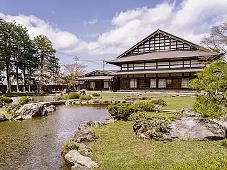 On the west side of the garden is the former Katō family residence, which consists of a main house and a detached tea room, which were constructed in 1902. The garden remained in private hands until it was donated to Kuroishi city in November 2019.[5]