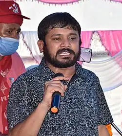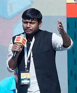 Kanhaiya Kumar (born January 1987) is an Indian political activist who served as the president of the Jawaharlal Nehru University Students' Union and leader of the All India Students Federation (AISF). He served as National Executive Council member of Communist Party of India.[2] He joined Indian National Congress on 28 September 2021 and has been appointed as the AICC in-charge of the National Student's Union of India.[3]