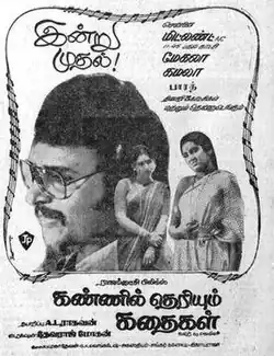 Kannil Theriyum Kathaikal (transl. Stories in the eyes) is a 1980 Indian Tamil-language film directed by Devaraj–Mohan and produced by A. L. Raghavan.[2] The film stars Sarath Babu, Sripriya, Vadivukkarasi and M. N. Rajam.[3] The songs for this film were composed by five composers: K. V. Mahadevan, G. K. Venkatesh, Shankar–Ganesh (a duo), T. R. Pappa (credited as Agathiyar) and Ilaiyaraaja. The film, released on 14 March 1980,[4] failed commercially.[5]