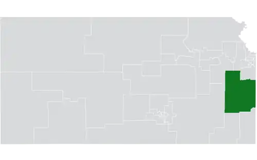 The district is located entirely within Kansas's 2nd congressional district, and overlaps with the 2nd, 4th, 5th, 6th, 9th, and 59th districts of the Kansas House of Representatives.[4] It borders the state of Missouri.[1]