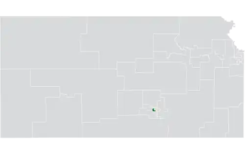 The district is located within Kansas's 4th congressional district, and overlaps with the 86th, 92nd, 95th, 97th, 103rd, and 105th districts of the Kansas House of Representatives.[4] At 20.4 square miles, it is tied with the 8th district for smallest Senate district in the state.[1]