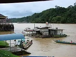 Kapit is accessible by boat (slightly more than 2 hours from Sibu by express boat), light aircraft, and most recently by road.[2] Reaching Kapit by car and bus from Sibu takes about 1 hour 30 minutes or about 1 hour from Song. It is the vibrant commercial and social center for the middle Rajang River catering to the longhouse communities and timber camps. It is an excellent base for exploring nearby longhouses or for arranging trips to the Upper Rejang and Balleh Rivers.
