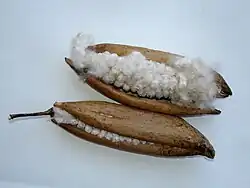 Kapok, or Kapok fibre, also known as ceiba and Java cotton, is the fine fibre from the fruit of the kapok tree Ceiba pentandra in the bombax family Bombacaceae.[1]