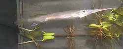 About 300 fish species have been identified in the river basin, of which 234 are of high economic value.[5] There are more fish species than any other river basin in Indonesia.[28] They belong to 120 genera and 40 families with the two major groups being cyprinids and catfish. More than 30% of the species originate from the sea and inhabit the delta areas.[29] Among the economically important species are food fish such as Pangasius catfish, giant gourami, kissing gourami, snakeheads, and large cyprinids such as Tor mahseers and barbs such as Leptobarbus and Puntioplites, and species for the aquarium trade such as the super red arowana and various rasboras.[28] Because of overfishing and habitat degradation, several species are threatened. Among these endangered species are the arowana and white-edge freshwater whipray, and the wallago catfish, which formerly migrated in large schools up and down the Kapuas River.[28]