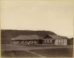 George Kennan noted in 1885, "The mines of Kara, which are the private property of his Imperial Majesty the Tsar, and are worked for his benefit, consist of a series of open gold placers." From south to north over 20 miles of the Kara River, they are Ust Kara, Lower Prison, Political Prison, Lower Diggings, Middle Kara, Upper Kara, and the Upper or Amurski Prison. The governor resided in the administrative center at Lower Diggings along with a company of soldiers and up to 300 convicts. The entire settlement area contained 1800 hard-labor convicts.[1]