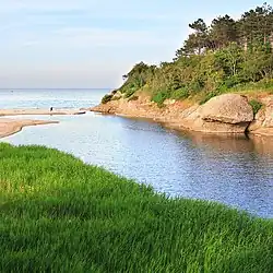 The river takes its source under the name Stara Vizitsa at an altitude of 331 m, some 400 m northeast of the summit of Demira (424 m) in the Bosna Ridge of the Strandzha mountain range. Throughout most of its course the Karaagach flows in a deep forested valley.[2] It initially flows in eastern direction, then takes a northeastern turn and after taking the waters from its left tributary Uzunchairska reka, it again heads east. It flows into the Black Sea in the southeastern part of the small Karaagach bay, at 800 m south of the town of Kiten on the territory of the Tsarevo Municipality. It forms a deep estuary which reaches depth of 11–14 metres (36–46 ft).