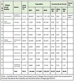 | 2 | Kottaiyur | Town Panchayat | 50,164 | 6.75[4] | 15 |