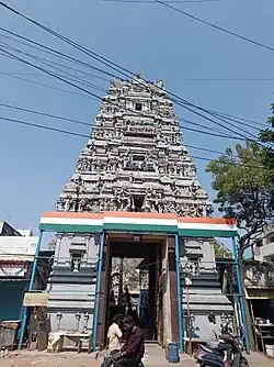 The main deities of the temples are Karaneeswara (Shiva) and his consort Porkodi Amman (Parvati).[1] The temple is located at Bazaar road in the middle stretch of the popular Kutcheri road in Mylapore. It is about half a kilometer from the famous Kapaleeswarar temple. Karaneeswara means "the Lord who is the cause" in Sanskrit. Shiva is believed to be the primordial cause of the universe which is his very form. He is also the Lord who can teach us the causality behind all events.