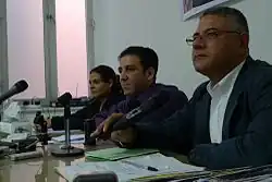 ![]() Kareem Amer, center, delivers his first public remarks four days before the country's parliamentary elections. November 2010. | |