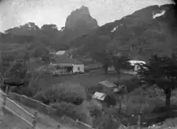 Karekare was a major settlement for Te Kawerau ā Maki in the Waitākere Ranges, known for its extensive kūmara (sweet potato) cultivations inland.[19] Te Kawerau ā Maki rangatira Kowhatu-ki-te-uru, known for his abilities to create stone pā,[20] settled at Karekare in the mid-18th century.[21] Directly north-east of the beach, Kowhatu-ki-te-uru built a pā known as Te Kaka Whakaara ("The Kākā Parrot Standing Watch") on The Watchman (Te Matua),[22][23] while the kāinga (village) near the pā was known as Te Marae o Mana, referring to Kowhatu-ki-te-uru's son Manaairangi.[22] The cultivations were known as Māraroa ("The Great Gardens").[17] Other significant pā in the area included one on Te Ahua Point, and one at Te Aoaho (above Karekare Falls).[23]