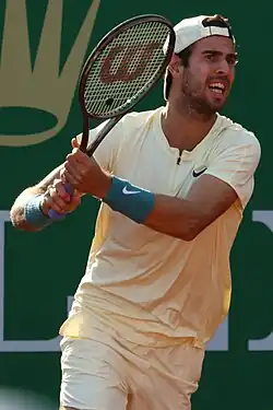 Karen Abgarovich Khachanov (Russian: Каре́н Абга́рович Хача́нов, Armenian: Կարեն Աբգարի Խաչանով; born 21 May 1996) is a Russian professional tennis player. He has been ranked as high as world No. 8 in men's singles by the Association of Tennis Professionals (ATP), achieved in July 2019. Khachanov has won seven ATP Tour singles titles, including a Masters 1000 title at the 2018 Paris Masters. He also claimed an Olympic silver medal at the 2020 Tokyo Olympics, and has reached two major semifinals at the 2022 US Open and 2023 Australian Open. In doubles, Khachanov has won one title at the 2023 Madrid Open partnering Andrey Rublev, and has a career-high doubles ranking of No. 53, achieved in January 2024.