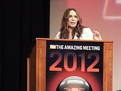 Between 2009 and 2011 she wrote the Naked Skeptic column for the Committee for Skeptical Inquiry (CSI),[29] now rebranded as The Good Word for Skeptical Inquirer.[30] In 2010 she began as the Bad Language columnist for Skeptic.[31][32][33] She has been a host of the Skeptics Society's MonsterTalk podcast[34] since its beginning in 2009[35] and in 2010 she became a host of the Center for Inquiry's Point of Inquiry podcast as well.[36] In 2011 she presented a talk at the Colorado Springs SkeptiCamp on Making (Up) History,[37] and at the Denver/Boulder SkeptiCamp on Braco the Gazer.[38] In 2012 she was a speaker at The Amazing Meeting in Las Vegas, giving a talk titled "Prediction and Language",[39] and in 2013 giving a talk titled "What an Excellent Day for an Exorcism".[40]
