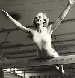 In 1952 and 1953, she won the gold all-around medal at the national championships in the international style of gymnastics.[5] She participated in the first World Gymnaestrada in Rotterdam in 1953.[3] At the 1954 World Championships, Lindberg was the only remaining team member from the 1948 Olympic team. The Swedish team came in eight place and won bronze in the team apparatus event.[4]