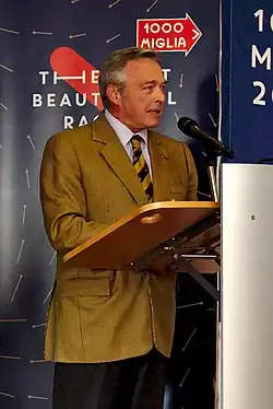 Karl-Friedrich also collects vintage cars,[12][9] a passion he shares with his father.[2][12] In 1987, Karl-Friedrich discovered the Mille Miglia, a classic car rally that runs from Brescia to Rome. He completed this 1,600 km race with his father. The following year, he set up a partnership between Chopard and Mille Miglia,[17][7][8] and the company became the official race sponsor.[2][13][9][18] Since that time, he has taken part in each edition, often with racing driver Jacky Ickx.[13] A few years later, he created further partnerships with the Grand Prix de Monaco Historique and with Porsche Motorsport.[2][7][12]