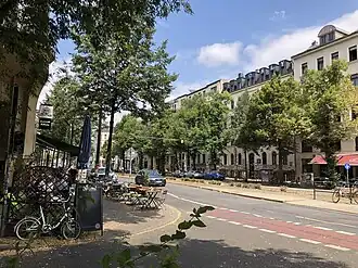 The Karl-Liebknecht-Strasse is a street in Leipzig, Saxony, Germany. It connects the locality (Ortsteil) Zentrum-Süd in the borough Leipzig-Mitte to the locality of Connewitz in the borough of Leipzig-Süd in a nearly straight line of 2.5 km (1.6 mi). Crossing the locality Südvorstadt including its central square Südplatz, Karl-Liebknecht-Strasse is one of the most popular streets in Leipzig[1] for its university, its shops, its bars and restaurants and more generally for its daytime and nighttime activities.
