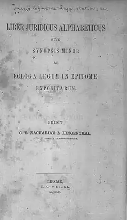 - This article incorporates text from a publication now in the public domain: Chisholm, Hugh, ed. (1911). "Zachariae von Lingenthal, Karl Salomo s.v. Karl Eduard Zachariae". Encyclopædia Britannica. Vol. 28 (11th ed.). Cambridge University Press. pp. 949–950.