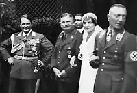 On 30 June 1934, Ernst had just recently married and was in Bremen on his way to Tenerife to honeymoon with his new wife.[11] SA Leader Ernst Röhm had repeatedly called for a "second revolution" that would introduce socialism into the Reich and banish the old Conservative forces of business and government.[12] Fearing the socialistic tendencies of the SA, along with Röhm's ambition to absorb the Reichswehr into the SA, conservative elements in the German Army and Kriegsmarine (navy) pressed for elimination of SA power.[13][14] Adolf Hitler undertook a purge of the SA, an event known to history as the Night of the Long Knives. It lasted until 2 July 1934.