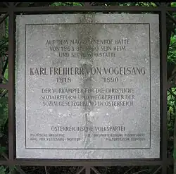 - ^ a b Rogers, Kara (August 30, 2018). "Karl, Freiherr von Vogelsang". Encyclopædia Britannica. Retrieved September 26, 2018.