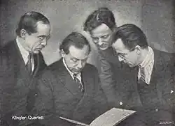 After peace returned in 1918 Klingler resumed the tradition of the Klingler Quartet, now with the second violin parts taken by Richard Heber and Max Baldner playing the cello. Baldner's seat was taken by Francesco von Mendelssohn in 1926.[10] Just like the Joachim Quartet, which on account of the qualities of its tone and style had been identified as one of the best strong quartets in the world, its spiritual successor, the Klingler Quartet, confirmed its own status by producing some of the best recordings of the day.[11]