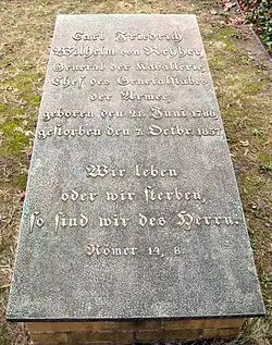 Karl Friedrich Wilhelm Reyher (from 1828 von Reyher) (21 June 1786, in Groß Schönebeck – 7 October 1857, in Berlin) was a Prussian soldier during the Napoleonic wars and later an officer who served as Minister of War in the government of Gottfried Ludolf Camphausen during the Revolution of 1848. After 1848 he also served as chief of the General Staff.