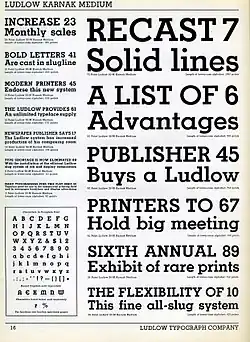 Karnak is a slab-serif typeface designed by R. Hunter Middleton for the Ludlow Typograph company and issued in the period 1931–1942.[1][2]