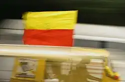 Rajyotsava Day is celebrated with great joy and vigour all over Karnataka. The entire state wears a festive look on this day as the red and yellow Kannada flags are hoisted at different strategic locations across the state and the Kannada anthem ("Jaya Bharatha Jananiya Tanujate") is chanted.[9] The flag is hoisted at political party offices and several localities even as youth in many areas take out processions on their vehicles.[10] Religion not being a factor, the Rajyotsava is celebrated by Hindus, Muslims,[11] and Christians as well.[12][13]