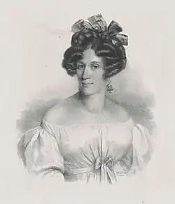 Karoline von Perin-Gradenstein was born in Vienna, capital of the Austrian Empire, on 12 February 1806 to a well-to-do family. She married Christian Freiherr von Perin-Gradenstein in 1830 and they had four children together, only three of which reached adulthood, before his death in 1841. A few years later, she hired the composer and journalist Alfred Julius Becher to teach piano for her daughter Marie and they later became lovers.[1]