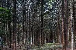 The targeted trees include Eucalyptus and Cypress trees. An area of 6.3 hectares within the forest has been marked for the exercise.[52] These exotic trees, such as eucalyptus trees, have bad hydrological consequences on water resources since they absorb much of it.[53] Moreover, the colobus monkeys in the forest cannot feed on them, unlike the native trees.