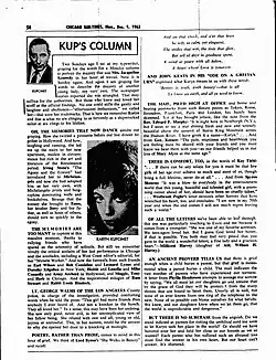 - ^ Phil Potempa (November 29, 2013). "OFFBEAT: Chicago gossip columnist Kup never forgot beloved daughter". Northwest Indiana Times. Retrieved July 7, 2015.